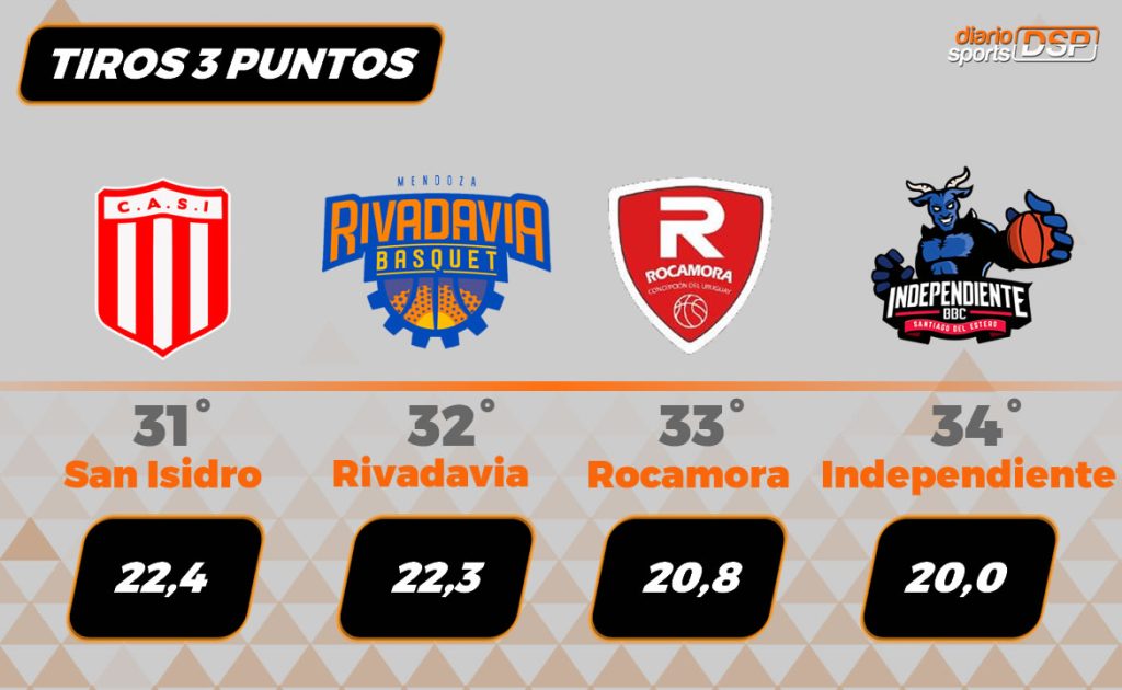 Ahí aparece el punto crítico. Que San Isidro tome pocos tiros de tres no es solamente una particularidad estadística: es un volumen bajo para los estándares competitivos actuales. En momentos definitorios, cuando las defensas se cierran y el porcentaje de dobles tiende a bajar —como suele ocurrir en playoffs—, los equipos necesitan otras vías de gol.