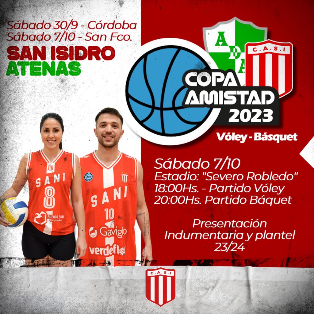 El Club Atlético San Isidro enfrentará, en básquet y vóley, a Atenas de Córdoba en el marco de la Copa Amistad. Serán dos encuentros que se jugarán en Córdoba y San Francisco respectivamente.