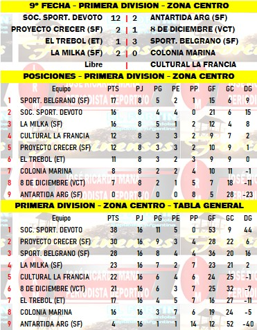 Este domingo los clubes de nuestra ciudad jugaron la 9° fecha y última del Torneo Clausura. Antartida Argentina y Proyecto clasificaron a los cuartos de final. Sportivo Belgrano y La Milka esperarán en semifinales. Mirá.