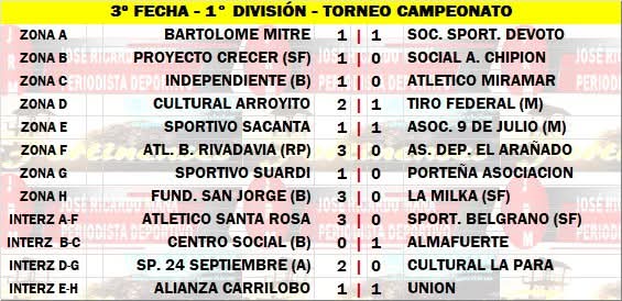 Proyecto Crecer venció este domingo a a Social Altos de Chipión como local por 1-0. El resto de los equipos locales no pudieron sumar en la tercera fecha. Mirá.