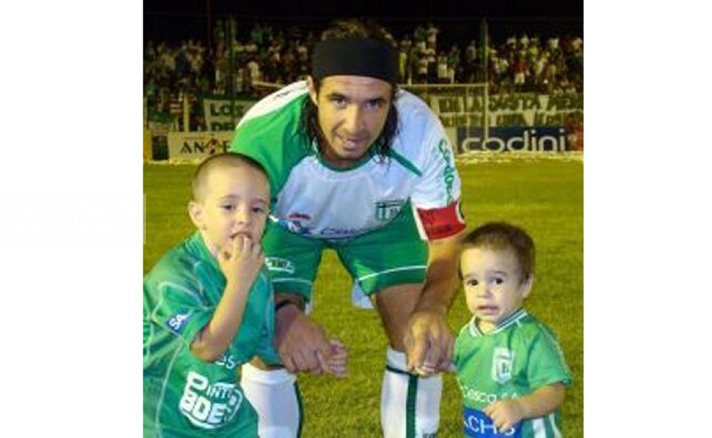 Lionel (derecha) junto a Elias (izquierda) junto a su papá Fabricio; una familia bien hincha de Sportivo Belgrano.
