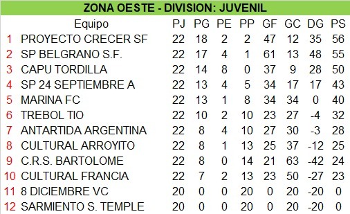 En Juvenil, Crecer se quedó con el título tras vencer a Cultural de La Francia 3-0 con goles de Juan Aymar, Maximiliano Gay y Víctor Caula. Seguido por Sportivo Belgrano, quien empató ante Antártida Argentina.