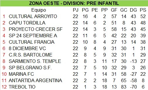 Tablas finales – Torneo Iniciación:
