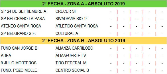 Con los juegos de la Zona A y Zona B del Torneo Campeonato se pondrá el juego la segunda jornada del certamen. Sportivo Belgrano recibirá a Cultural de Arroyito, mientras que Proyecto Crecer viajará a Arroyito para visitar a Sportivo 24 de Setiembre.