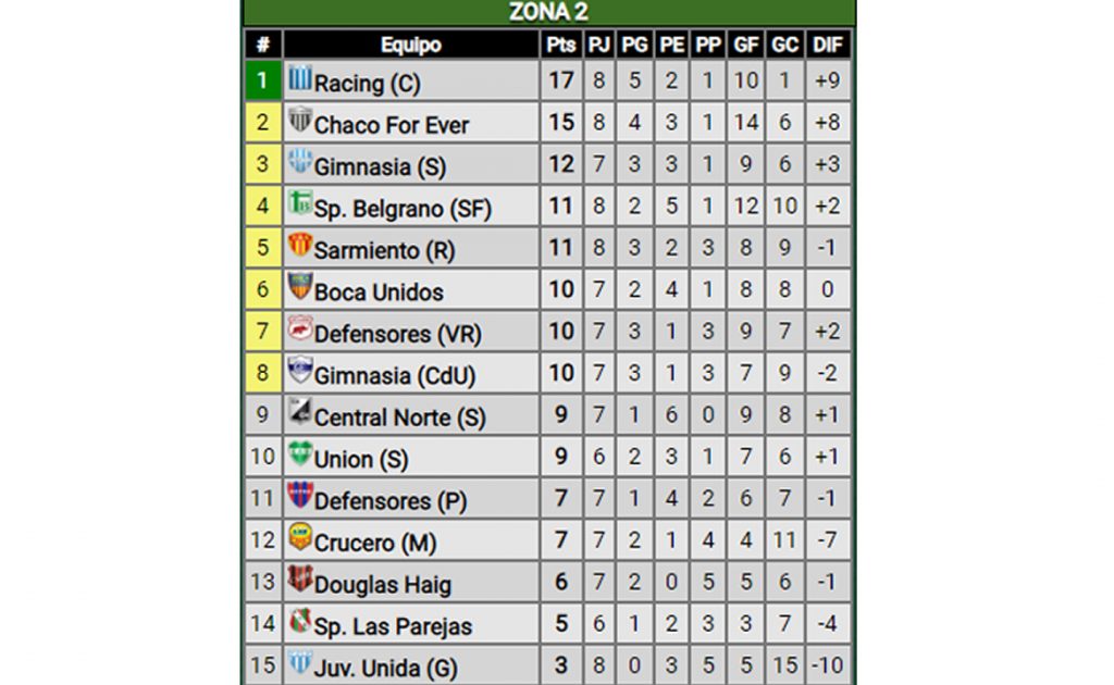 El que si lo aprovechó fue Chaco For Ever que ganó como visitante frente a Defensores de Belgrano y se puso a dos puntos del primer lugar. Algo que puede hacer Gimnasia y Tiro de Salta este domingo cuando reciba Sportivo Las Parejas.