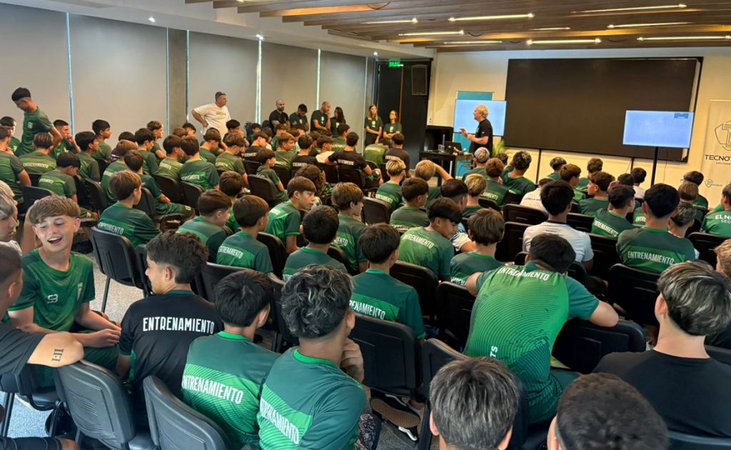 La actividad fue organizada por el Equipo Interdisciplinario del club y contó con la participación de Juan Manuel Arostegui y del capitán del plantel profesional, Leonardo Ferreyra, quienes compartieron sus experiencias con los jóvenes futbolistas y transmitieron el valor que representa defender los colores de la institución.